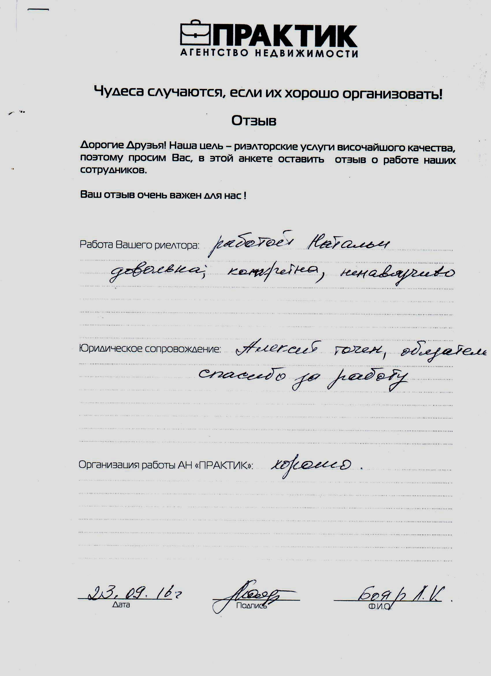 Відгук про роботу АН Практик від 06.08.2016 Барзман Т.В.