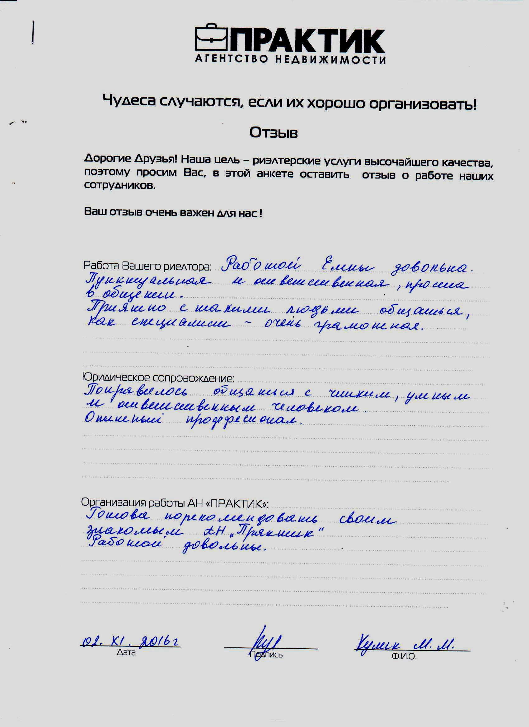 Відгук про роботу АН Практик від 02.11.2016 Кулик М.М.