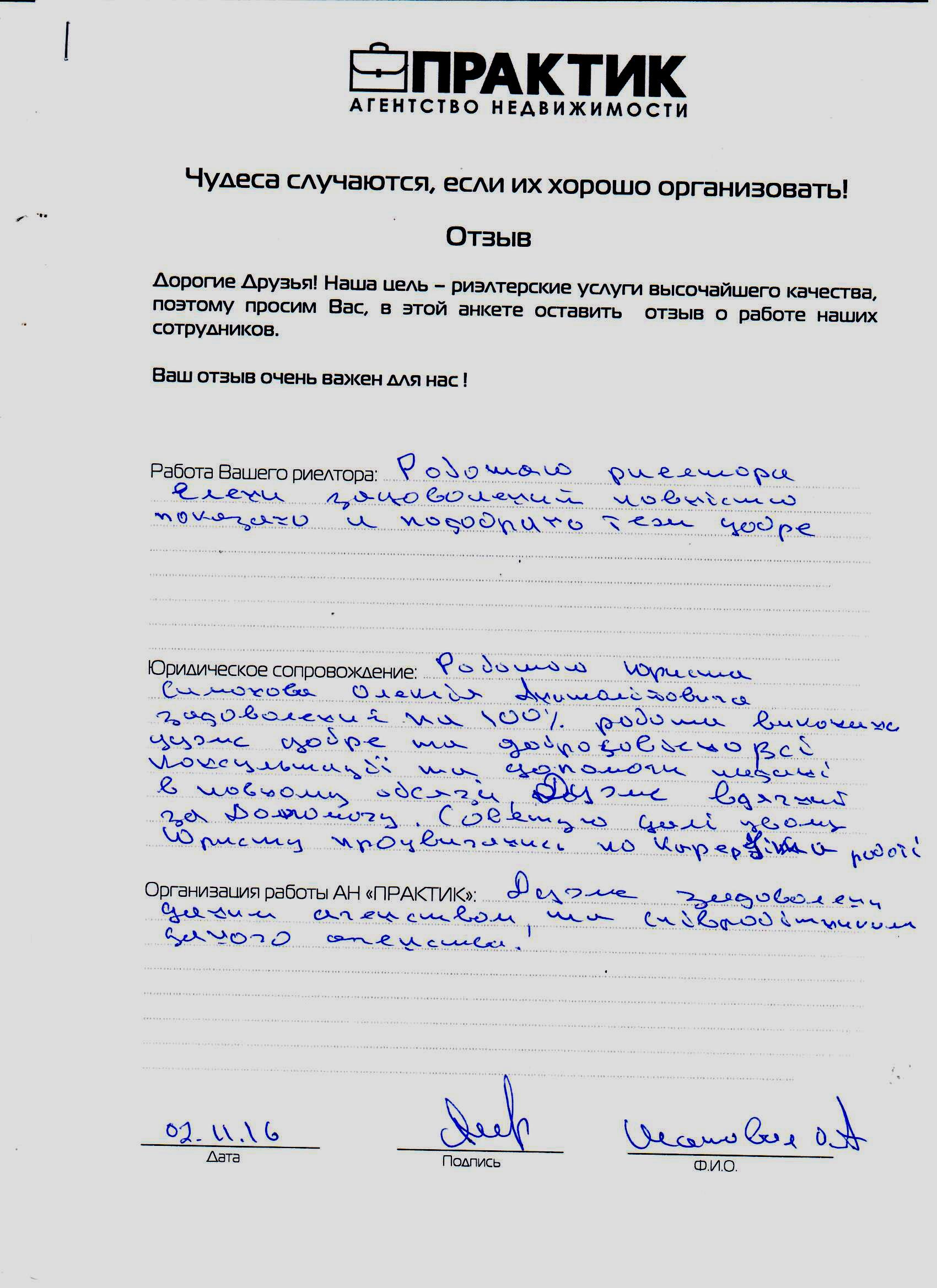 408Відгук про роботу АН Практик від 02.11.2016 Шаповал О.А.