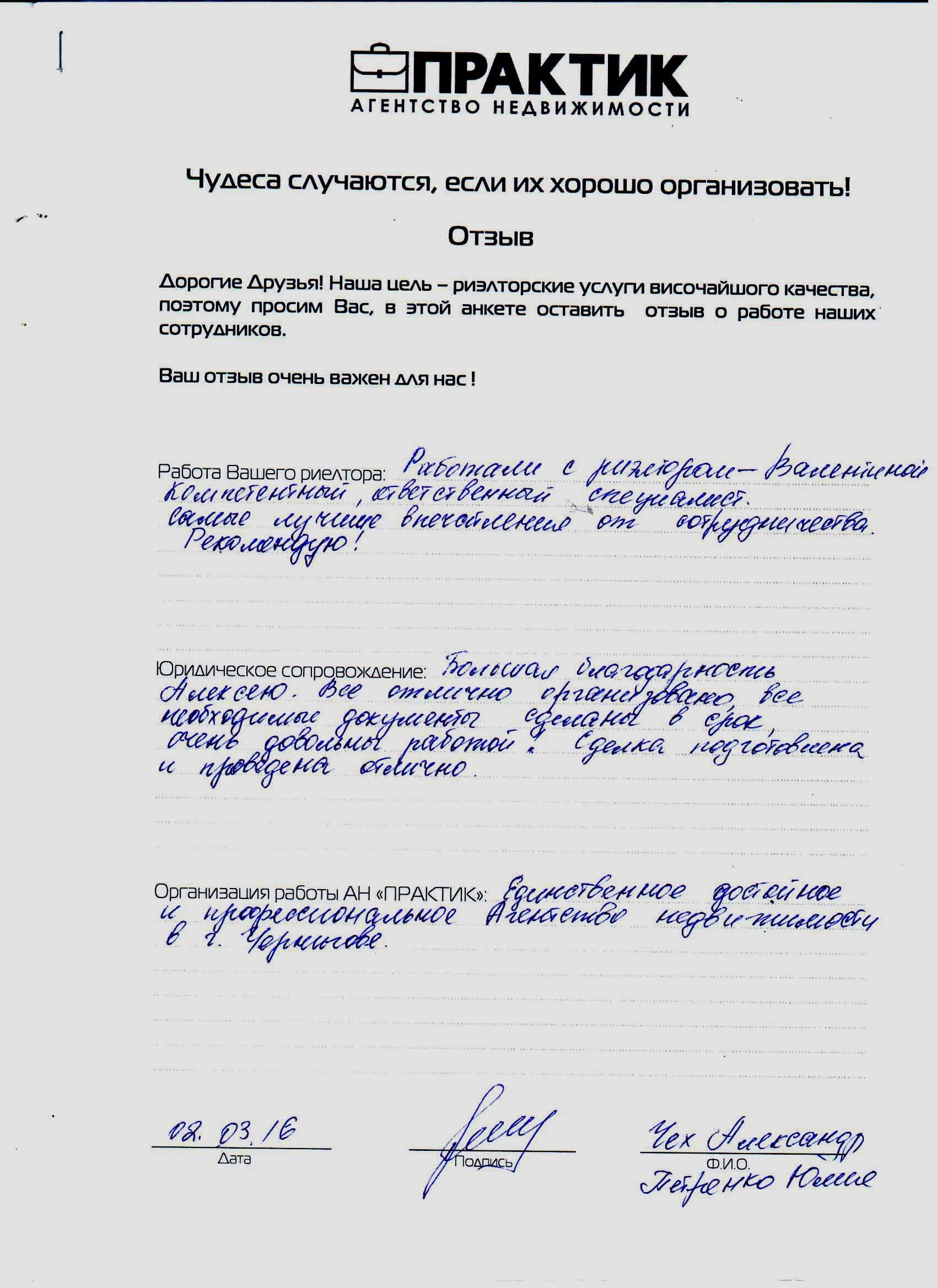 Відгук про роботу АН Практик від 02.03.2016 Чех А. и Петренко Ю.